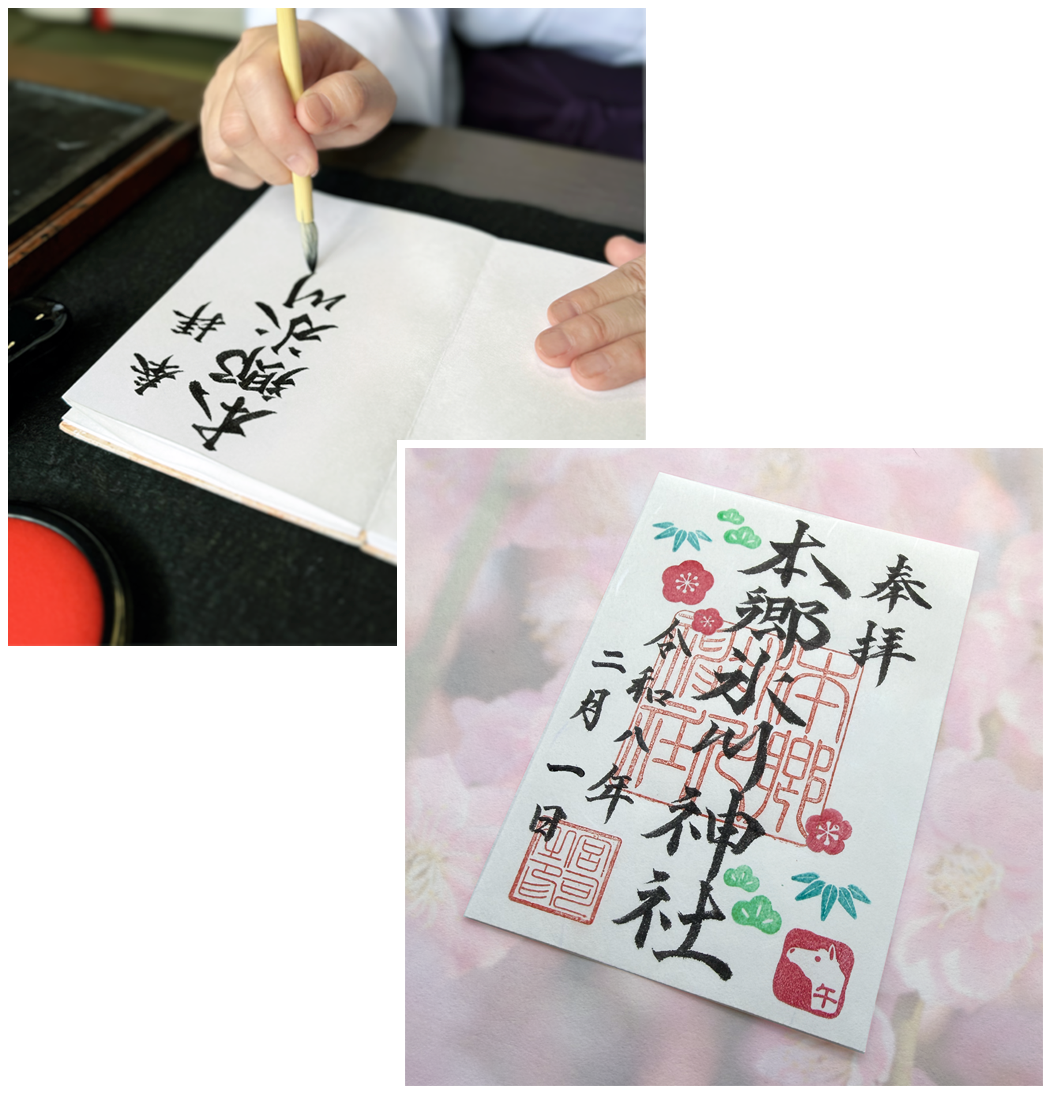 御朱印帳への直接のお書き入れはご対応が可能な曜日や時間が限られますため、直書きをご希望の方はご来社前に御朱印のご案内ページまたは X (旧ツイッター) にて受付時間をご確認ください。