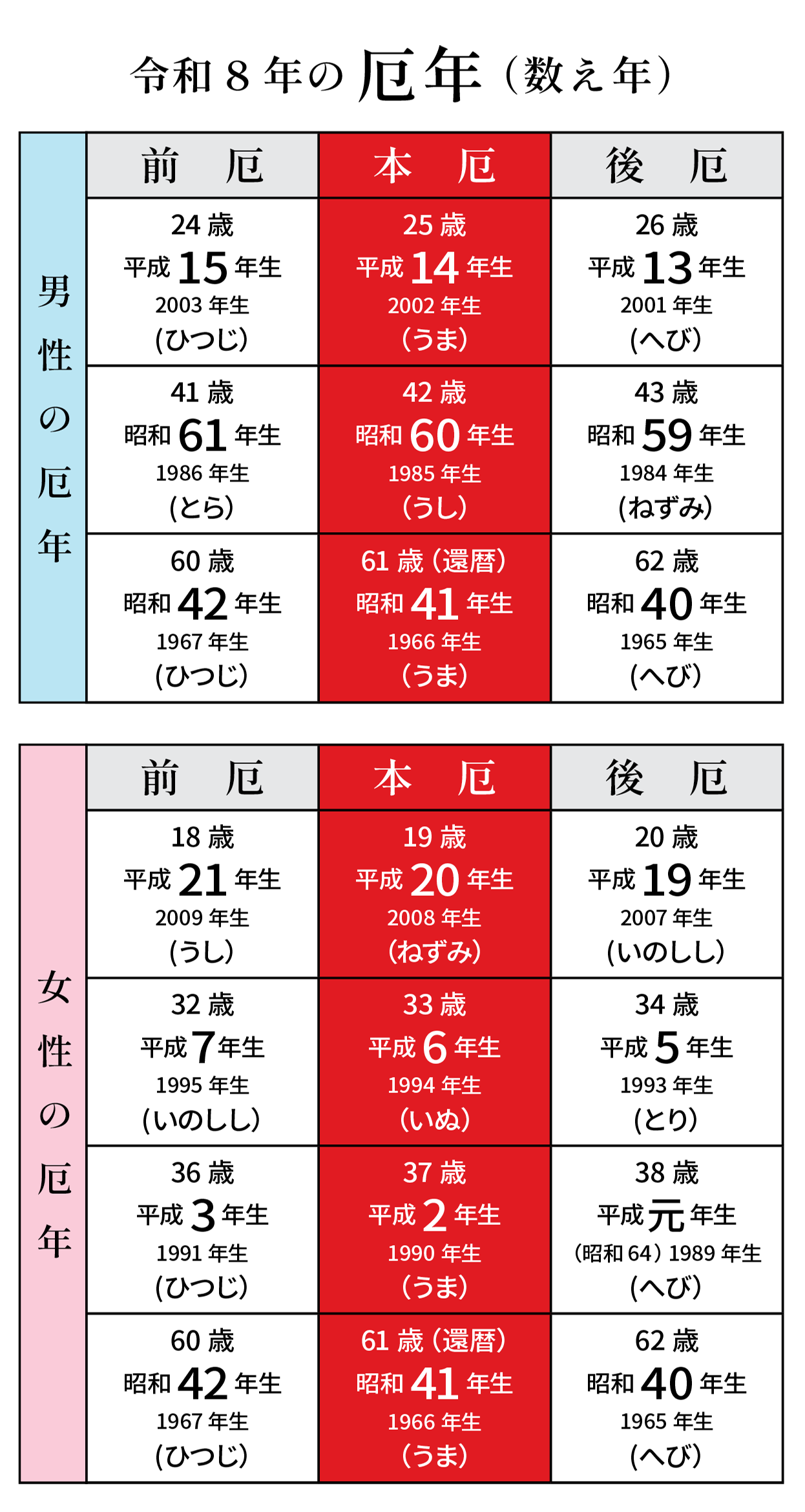 人生の節目である厄年には厄祓いをして平穏無事をお祈りください。